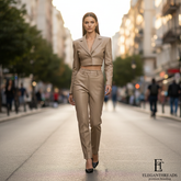 Step into effortless elegance with our Cropped Beige Lambskin Leather Blazer & Pants Set — designed for the modern woman who seeks style, comfort, and sophistication.