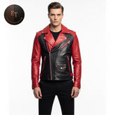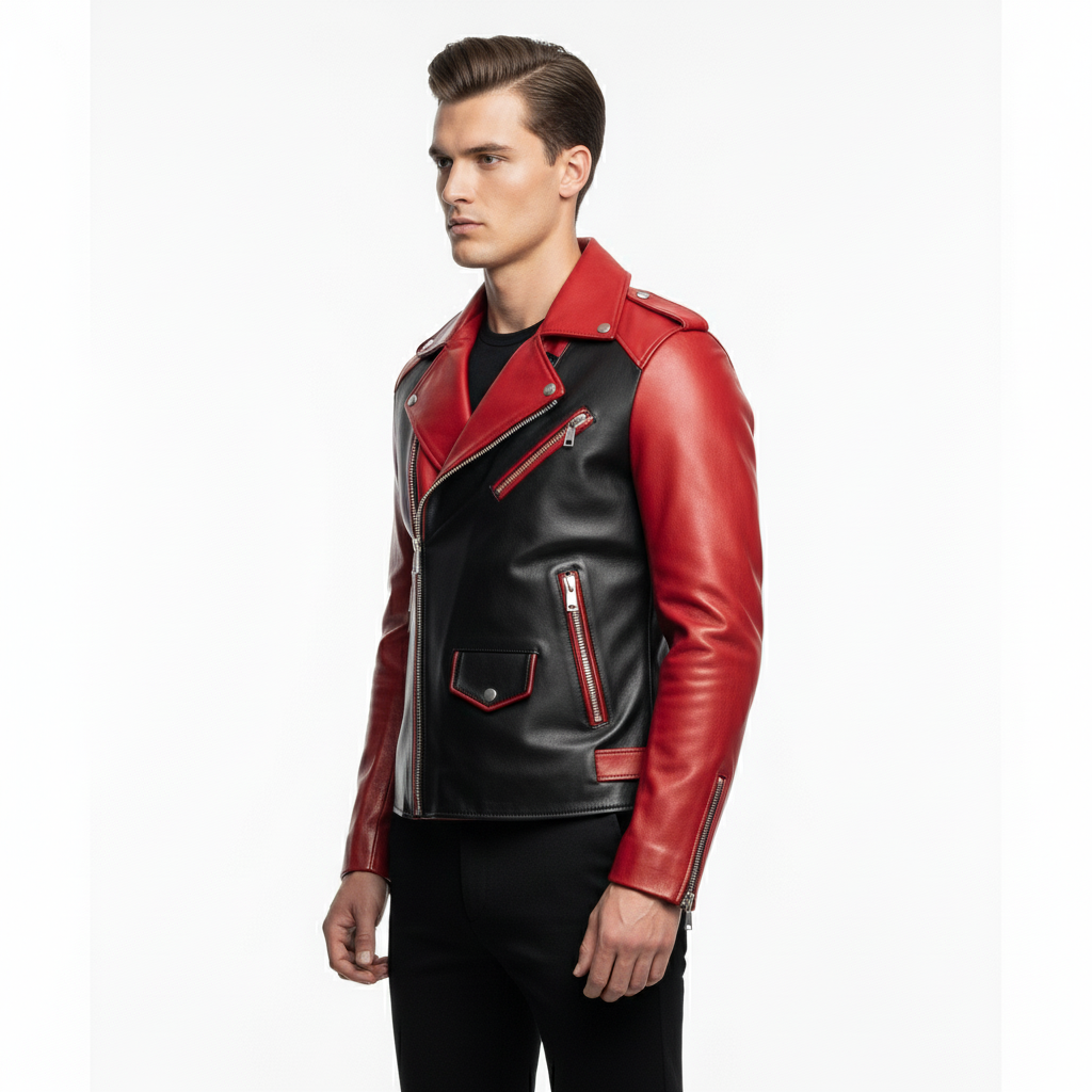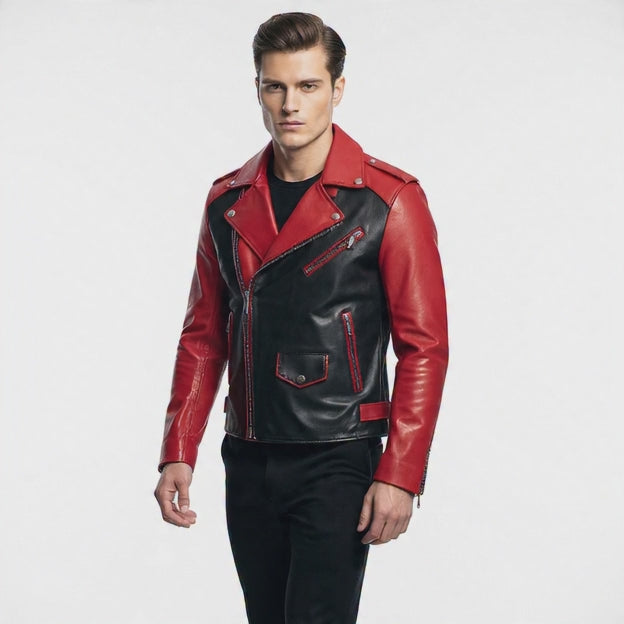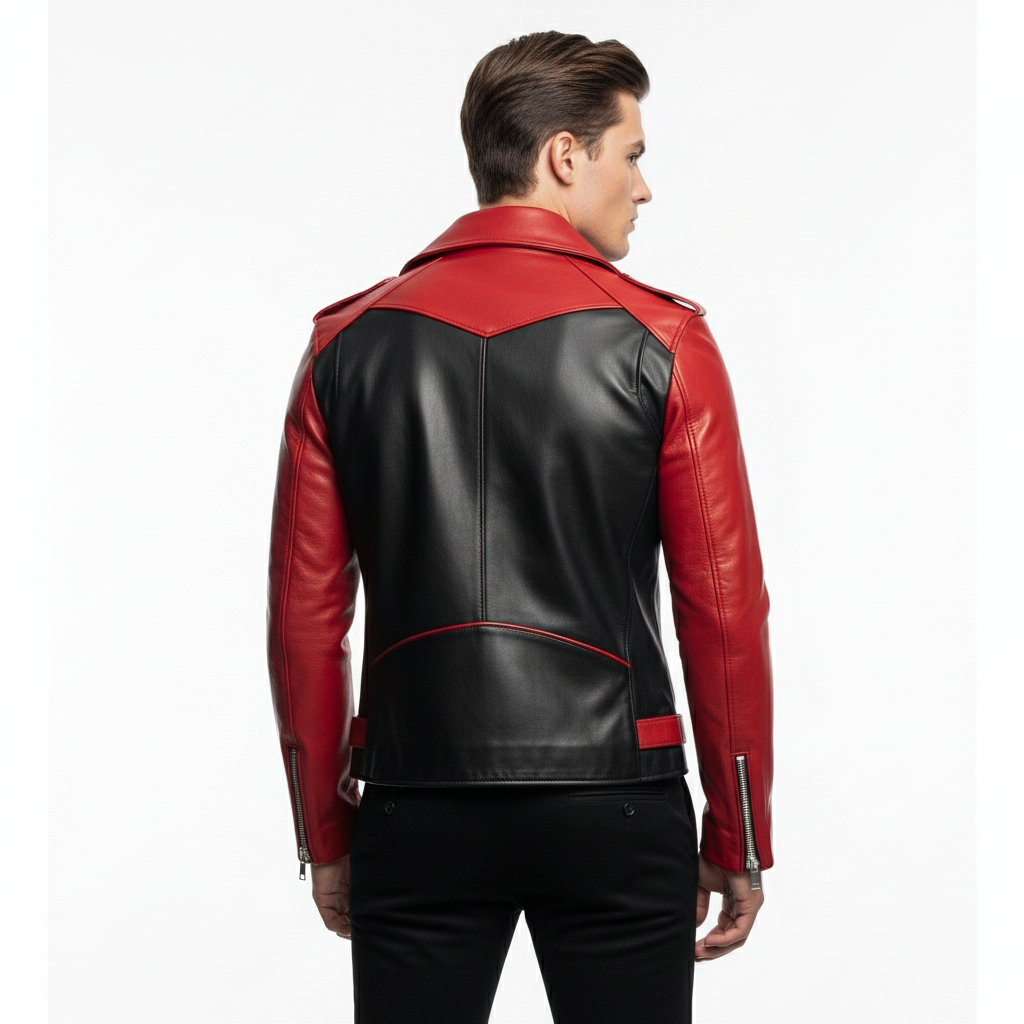 Luxury Red & Black Lambskin Leather Moto Jacket for Men | Asymmetrical Biker Style | Premium Handmade Slim Fit Jacket – Eleganthreads