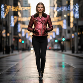 Elevate your winter look with this handmade metallic burgundy leather jacket, designed for those who love premium detail and modern edge.