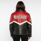 "Vintage 1980s Marlboro-Style Biker Leather Jacket – Red & White Retro Leather"